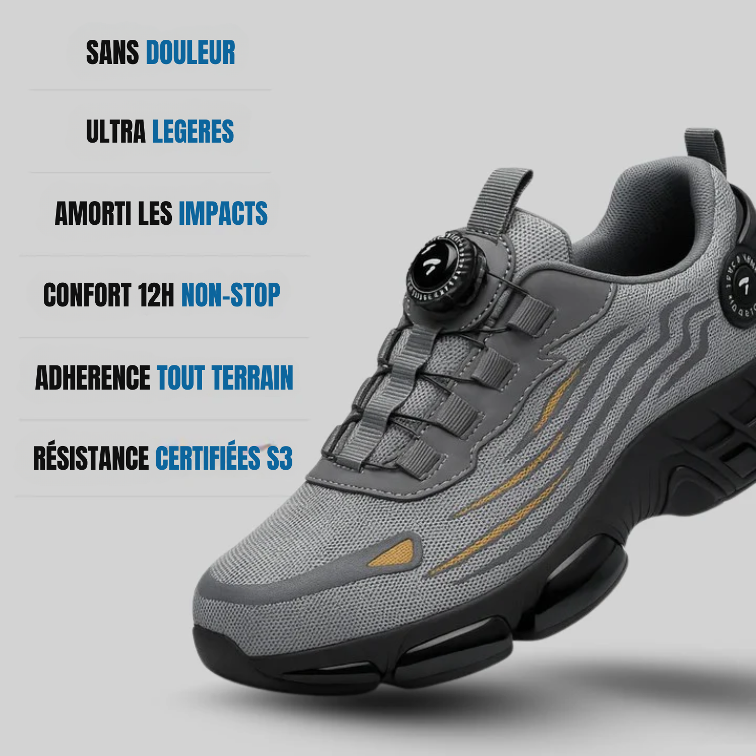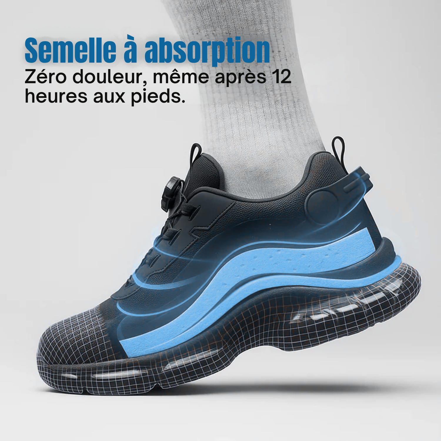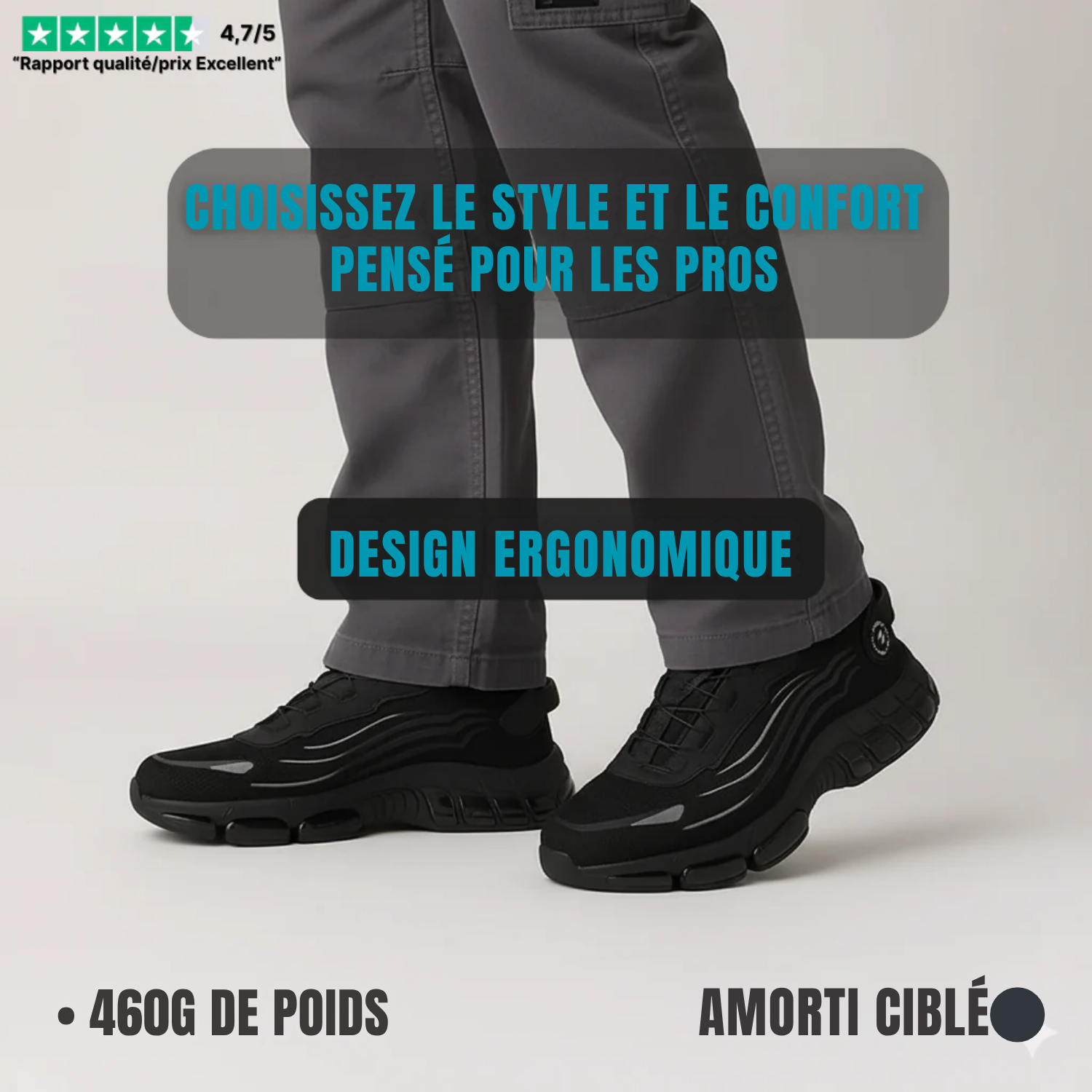 La semelle Memory Foam haute densité élimine les douleurs aux pieds, et le design moderne ressemble à de vraies sneakers. Vous bénéficiez du même niveau de sécurité avec un confort et un style révolutionnaires.