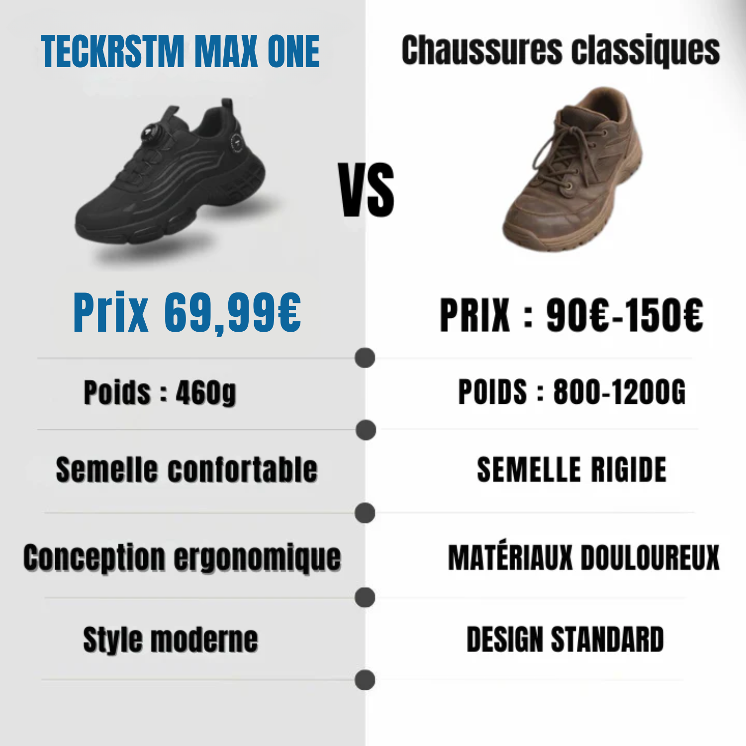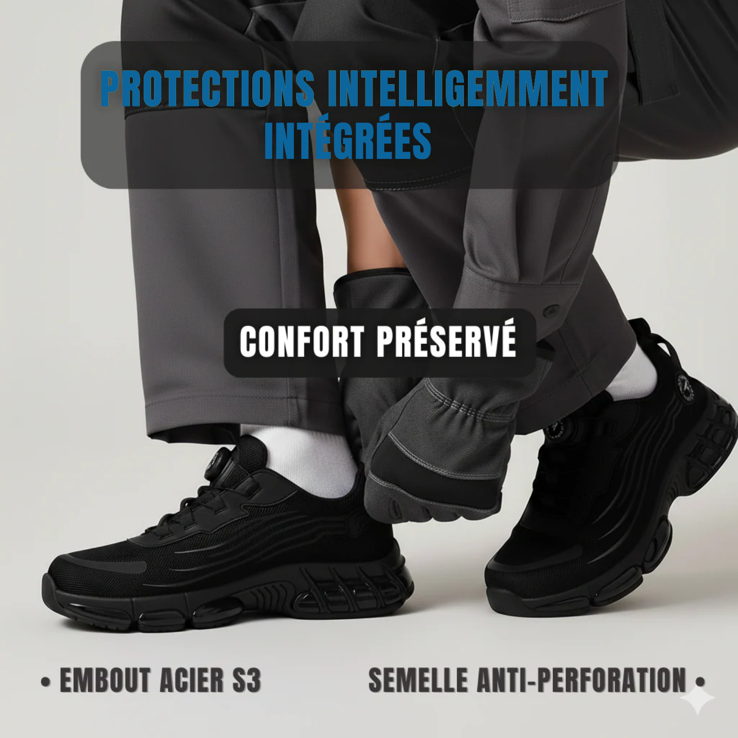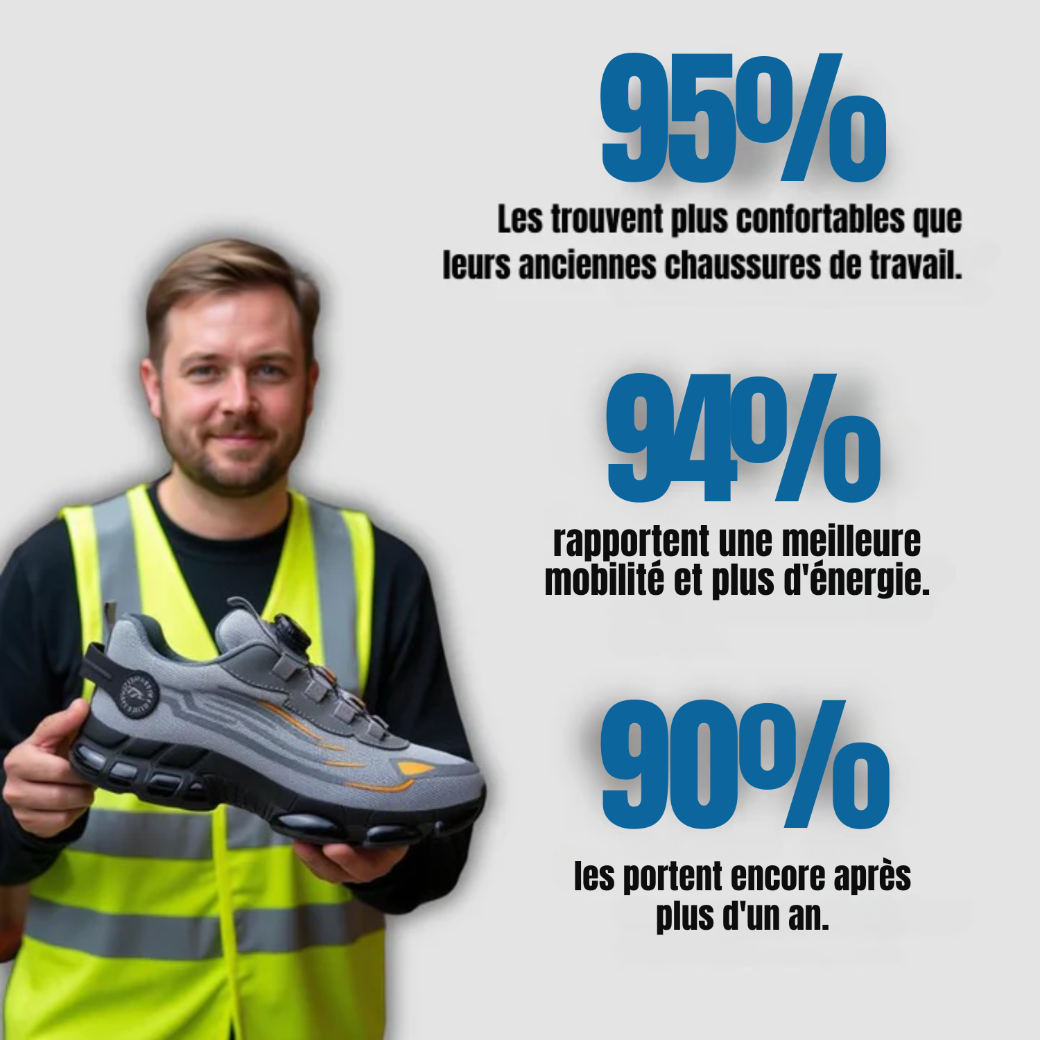 La semelle Memory Foam haute densité élimine les douleurs aux pieds, et le design moderne ressemble à de vraies sneakers. Vous bénéficiez du même niveau de sécurité avec un confort et un style révolutionnaires.