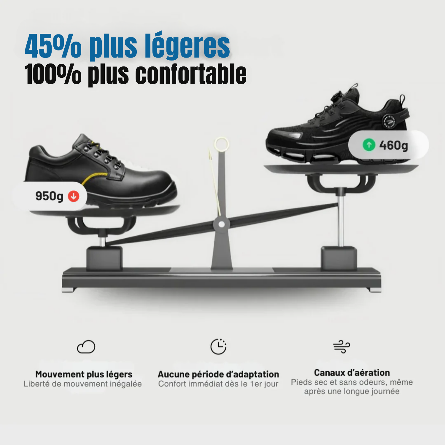 Nos baskets sont 45% plus légères que les chaussures de sécurité standard tout en conservant la même protection S3.